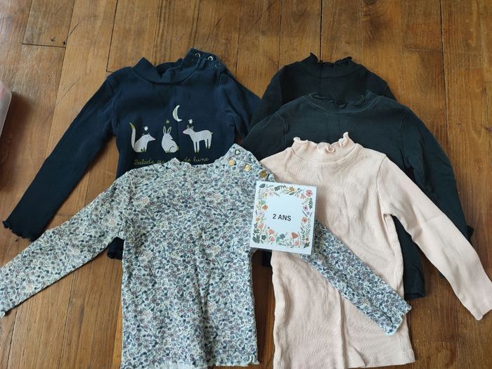Lot 4 t shirt manches longues Avec petit col Épais/ cotelés Kiabi / lulu castagnette / gemo 24 mois