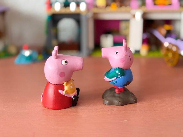 Vends lot de 2 figurines Tonies : Peppa Pig Georges ✨ État : Tonies en parfait état de fonctionnement Georges présente un petit trait de feutre (visible sur la photo) Peppa en excellent état 📦 Vendu uniquement en lot 📸 Photos réelles du produit 📦 Envoi rapide et soigné ‼️Photos et videos seront faites avant chaque envoi.‼️ N’hésitez pas à regarder le dressing ☺️
