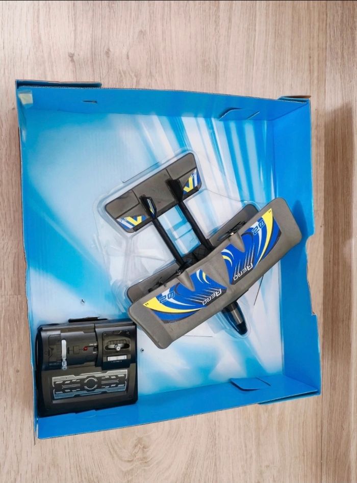 avion radiocommandé Flybotic Bi-Wing Evo de la marque Silverlit. L'article est neuf, encore dans sa boîte d'origine (voir photos). Idéal pour un cadeau ou pour débuter l'apprentissage du pilotage Caractéristiques 🔸️2 canaux, 🔸️ fréquence 2,4 GHz (portée env. 60m) 🔸️hélices de rechange