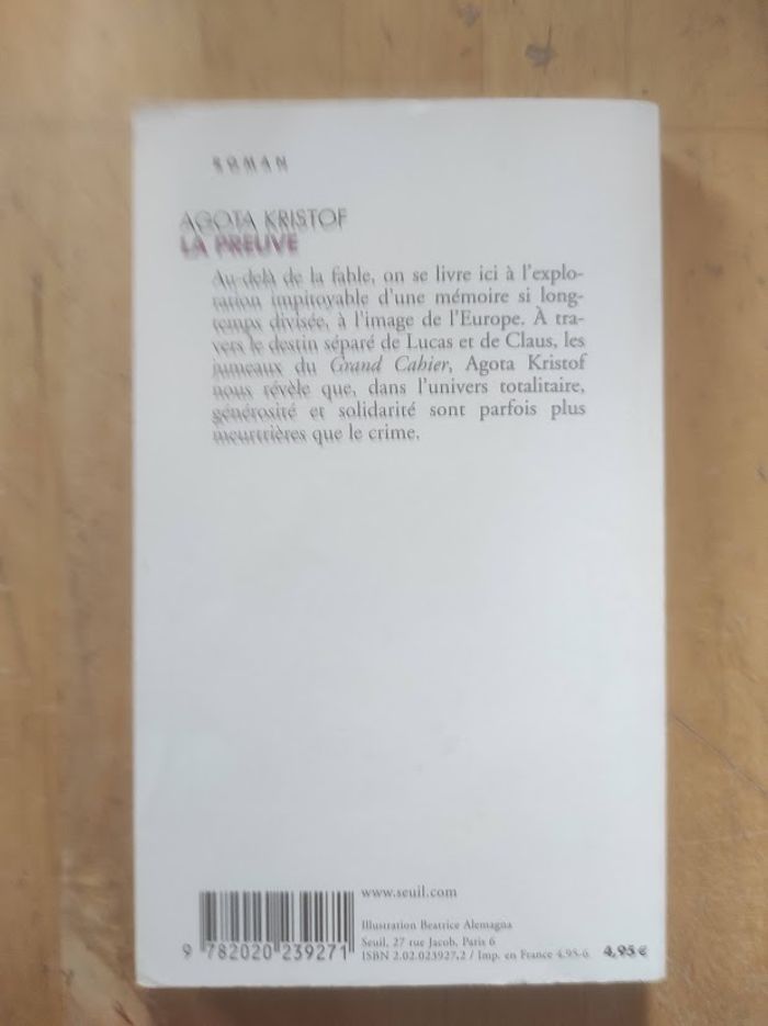 La preuve Agota Kristof Points 2005