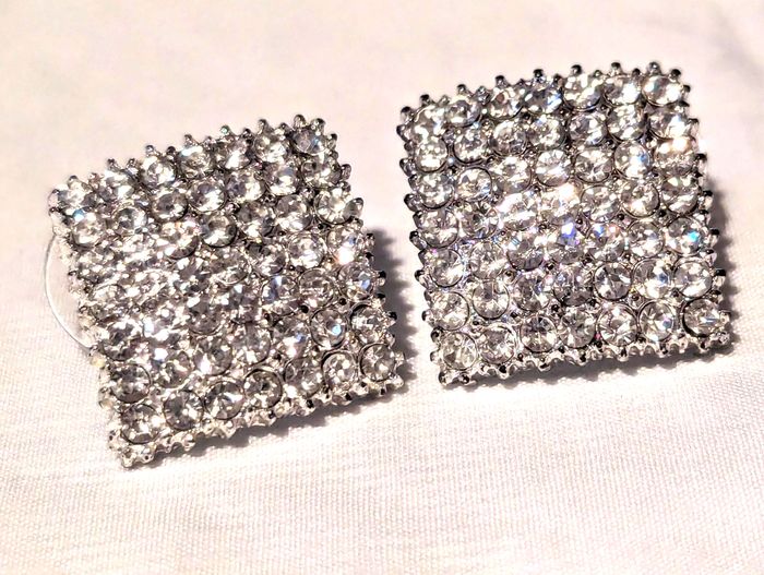 Boucles d'Oreilles Carrées Fine avec une Surface Courbe Recouvertes de Petites Pierres Blanches en Strass. Bijoux Argentés Fantaisies pour les Femmes. ☑ Carrées. ☑ Surface "Courbe". ☑ Fines. Spécifications: Matériel: Acier Inoxydable Petites Pierres (Blanches): Strass Dimensions d'une Boucle d'Oreilles: Env. 16 x 16 mm Epaisseur d'une Boucle d'Oreilles: Env. 2 mm Couleur Dominante: Argenté Couleur des Petites Pierres (Strass): Blanc Réf: bo19