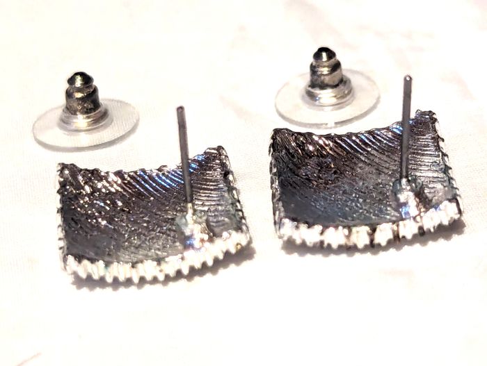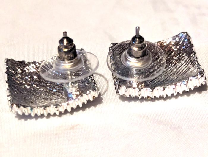 Boucles Oreilles Carrées Fines Surface Courbe Pierres Blanches Bijoux Argentés Fantaisies Femmes - photo numéro 4