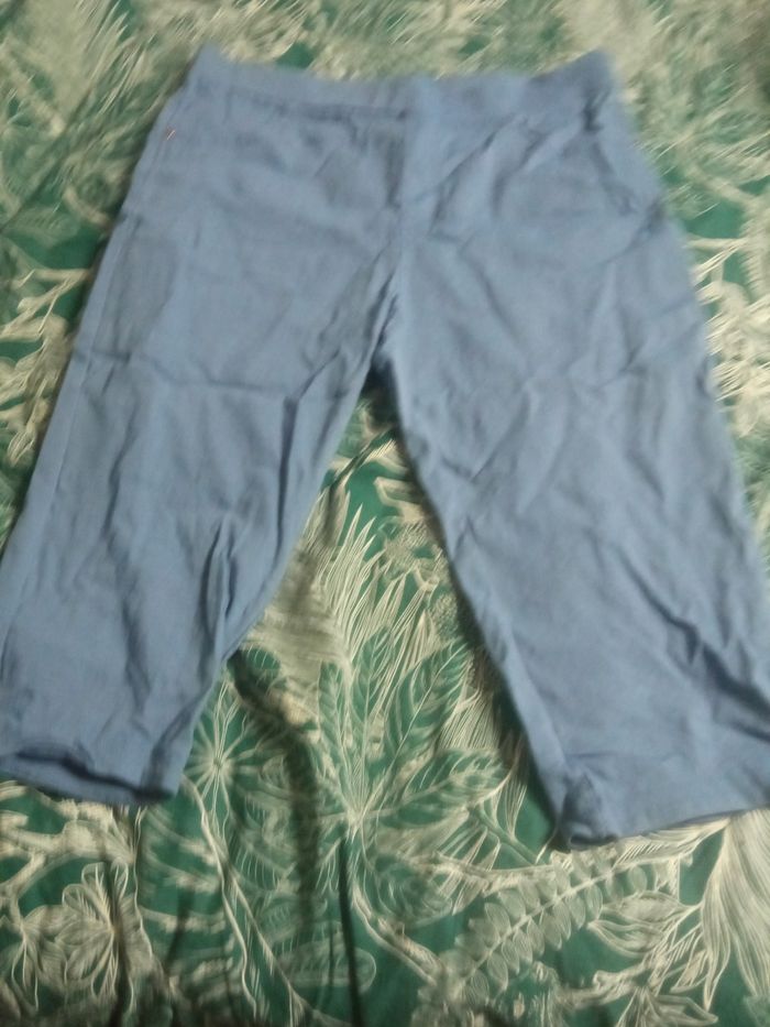 Pantacourt en jeans . 78%coton, 15% nylon,7% spandex. Taille 4. Longueur de la taille : 42 cm. Taille élastique.