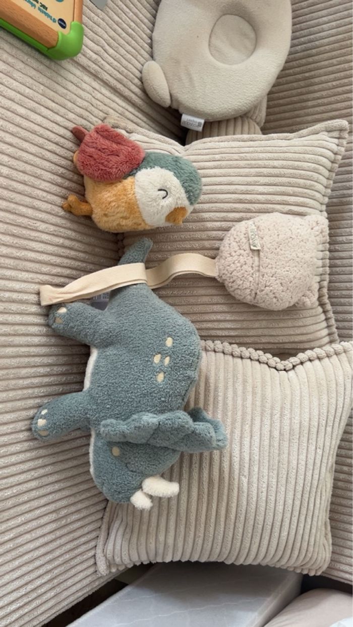 Une peluche rhinocéros jollein Une peluche oiseau little dutch Un attache tétine Babyshower offert en plus