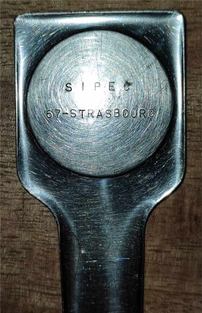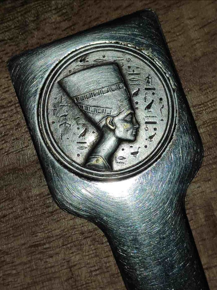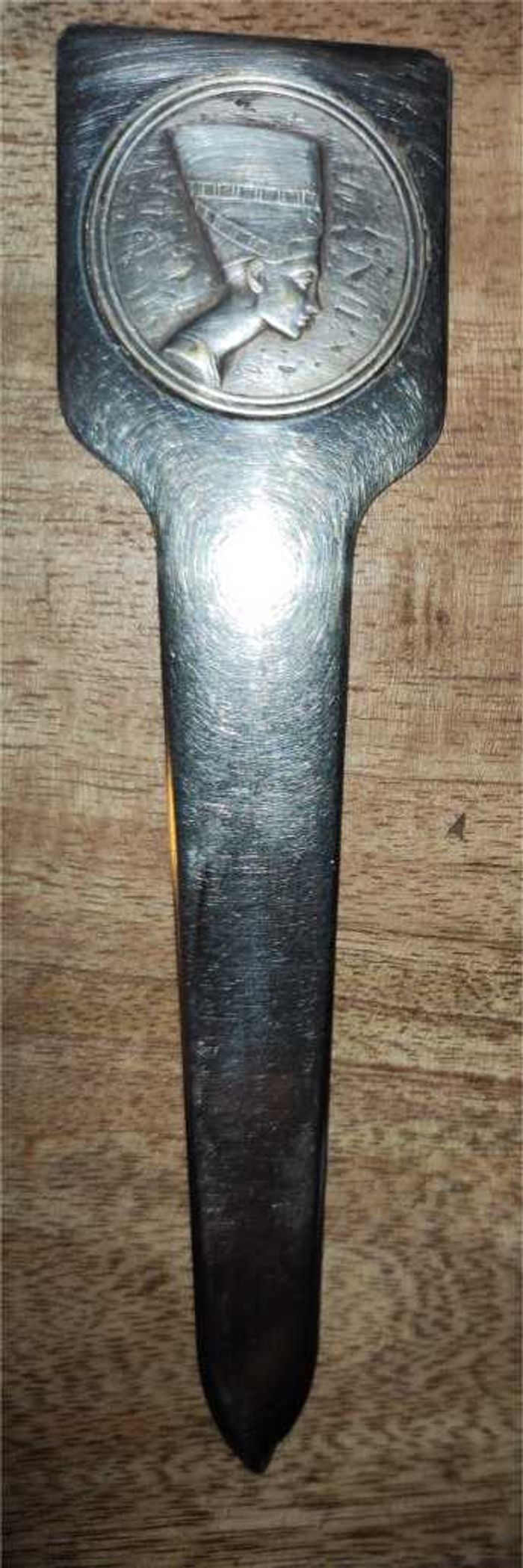 ✉️ 🔪 Coupe papier / Ouvre lettre Motif Egypte Nefertiti Inscription SIPEC 67-STRASBOURG Longueur 14 cm Poids 24g ⚠️👉 Etat satisfaisant, pointe tordue (voir photos) .