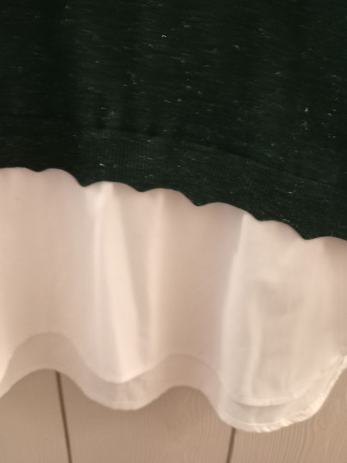 Robe de la marque Amitié, couleur verte pour le haut et le bas blanc style chemise. Prix estimé en magasin 39 €90.