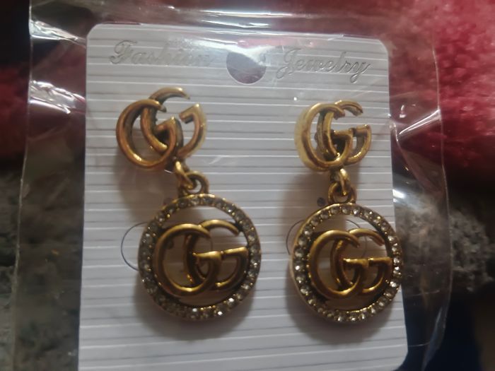 Boucle d'oreille pendante acier inoxydable couleur doré avec strass neuve