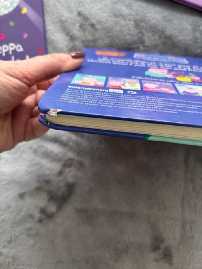 Vends lot de 6 livres Peppa Pig pour enfants, en bon état. (Quelques accrocs pour certains voir photos) Livres cartonnés, solides, parfaits pour les petites mains. Titres inclus : • Peppa va à l’école • Peppa part en vacances • Peppa range sa chambre • Peppa fait de la danse • Mon papa • Ma mammy (mini livre) Maison non-fumeur, livres propres, sans déchirures ni pages manquantes. Idéal pour enfants à partir de 2/3 ans. Envoi rapide et soigné N’hésitez pas à regarder le dressing ☺️ ‼️Photos et videos seront faites avant chaque envoi.‼️