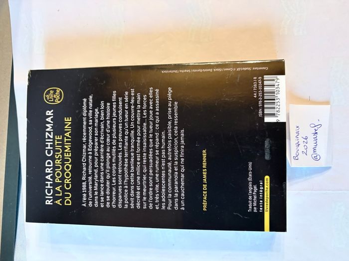 Richard Chizmar – À la poursuite du croquemitaine Édition : Le Livre de Poche Plongez dans ce thriller addictif et glaçant, acclamé par la critique et souvent comparé au style de Stephen King. Un mélange parfait entre fiction et "true crime" qui vous tiendra en haleine jusqu'à la dernière page ! • État : bon état • Genre : Thriller, Horreur, Policier, Suspense. 💡 N'hésitez pas à faire un lot avec d'autres livres de ma vitrine pour réduire les frais de port ! 🔍 Retrouvez toutes les œuvres de cet auteur dans mon dressing via ce hashtag #chizmarbouquinaix #thrillerbouquinaix #bouquinaix #richardchizmar #suspense #truecrime #lelivredepoche #alapoursuiteducroquemitaine