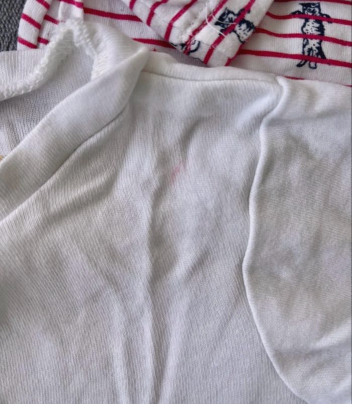 Vends lot de 2 t-shirts manches longues de la marque Orchestra, taille 12-18 mois (80cm) • 1 t-shirt blanc avec motif brodé (présente une petite tache, visible sur photo) • 1 t-shirt rayé rose/blanc avec volants Ensemble en bon état général, idéal pour la crèche ou le quotidien. 📦 Vendu en lot uniquement Envoi rapide et soigné ‼️vidéo et photo de l’emballage avant envoi‼️ N’hésitez pas à regarder le dressing ☺️