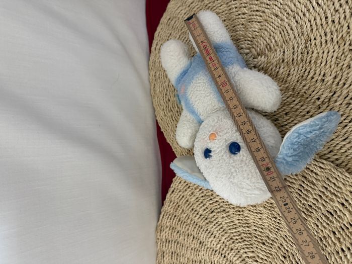 Peluche doudou chien vintage PASTEL blanc bleu rose yeux & nez durs 22 cm  - photo numéro 5