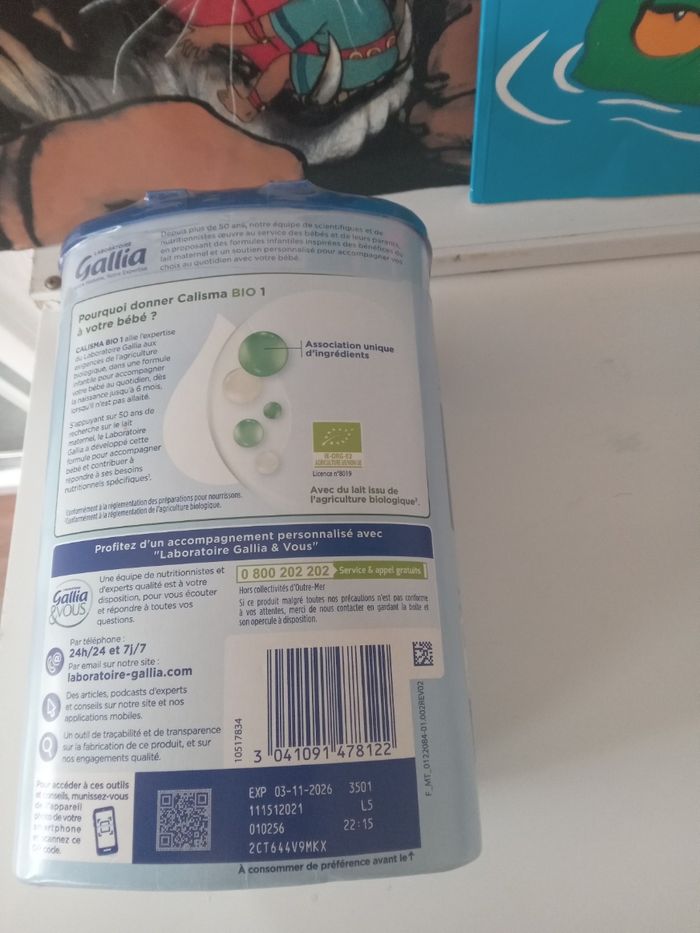 Boîte de lait gallia callisma bio. 1er âge neuf. 800g Dlc 11/2026 Envoie très bien soigné et rapide