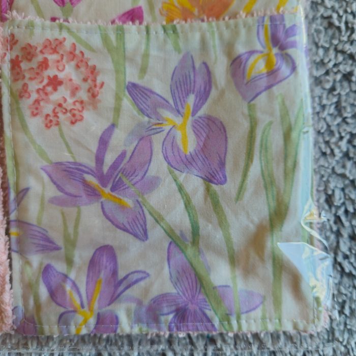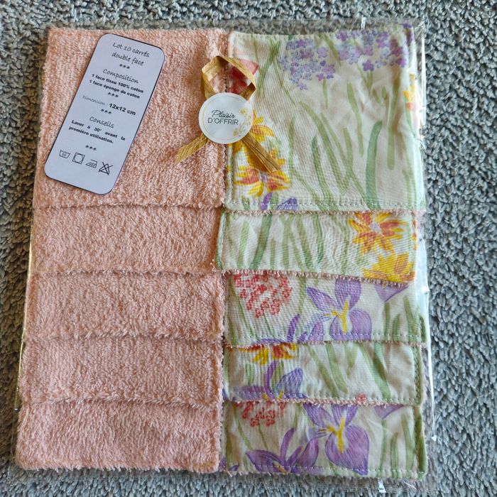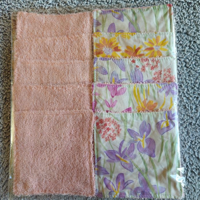 Lot 10 lingettes double face un côté tissu 100%coton motif fleuri et un côté éponge de coton rose poudré lavables jusqu'à 60 degrés Taille 12x12 cm Neufs jamais utilisés Achetez en lots réduction automatique à partir de 3 articles