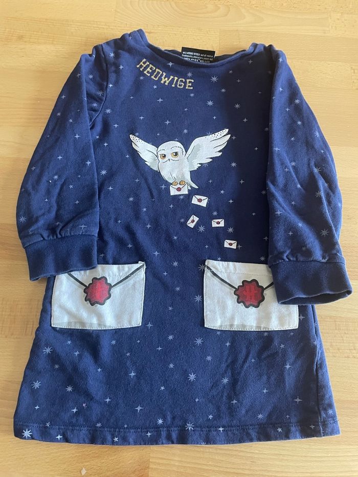 Robe Edwige d’Harry Potter En très bon état Une petite tâche sur la poche, voir photo mais ne se voit pratiquement pas Taille : 4 ans Marque : Harry Potter