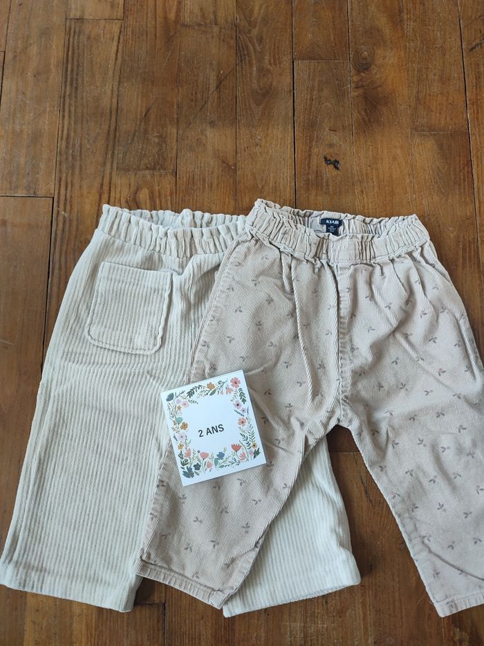 Lot de deux pantalons souples et chauds Imitation velours Kiabi et TEX Couleur écrue / Ecru rose avec motif