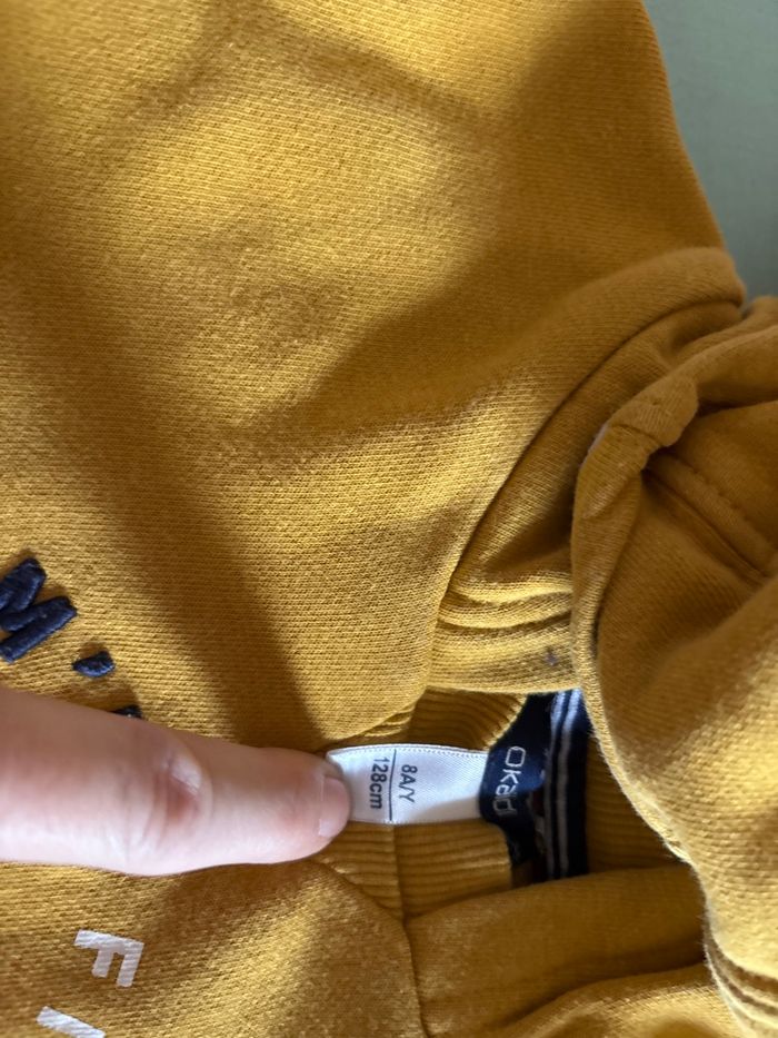 Vends sweat avec capuche de marque okaidi taille 8 ans très bon état Il est jaune avec inscription sur le devant et sur une manche