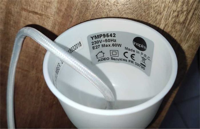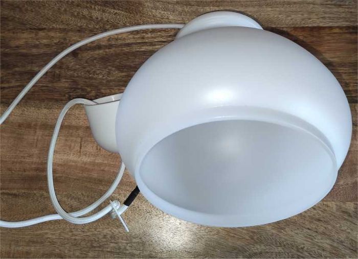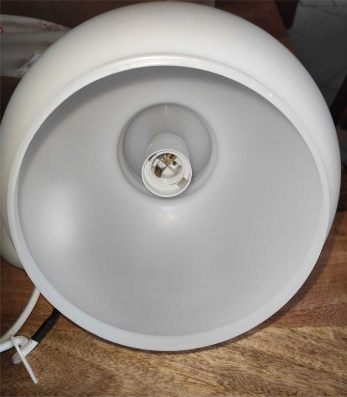 🔌💡 Lampe à suspendre Couleur blanc Matière plastique Hauteur 17cm Diamètre 17cm Poids 350g environ Ampoule (non fournie) à vis E27 (grand) Très bon état .