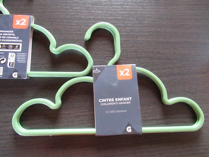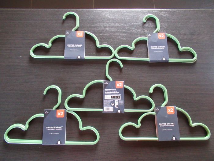 10 cintres / porte manteau pour vêtement de bébé / enfant neufs J'en ai 2 lots de 10 à vendre, si vous voulez les 20 je peux vous les vendre à 13 euros les 20. Merci de me contacter avant pour que je modifie l'annonce.