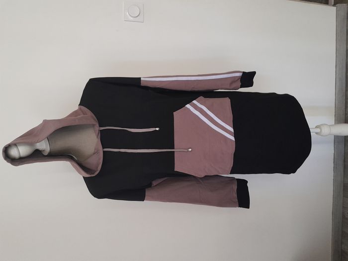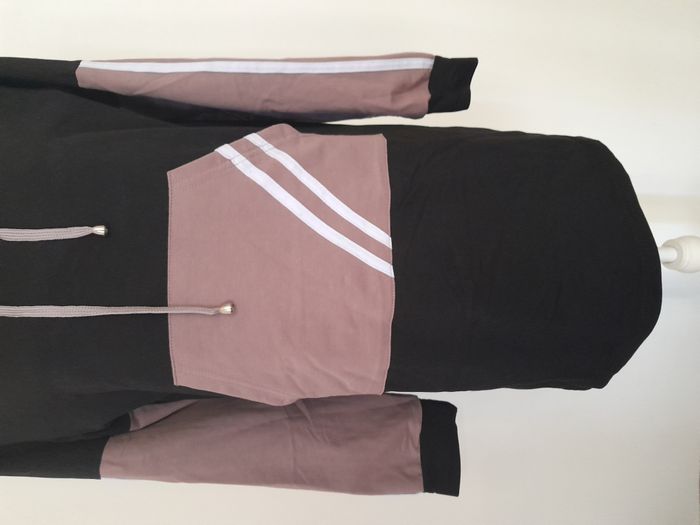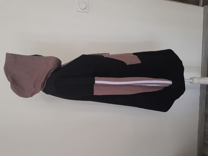 Robe sweat, à capuche, grande poche devant, bande sur les manche Longueur : 79cm Aiss / Aiss : 52cm Matière : 70 % Coton, 25 % Polyester, 5 % Lycra Marque : Gül