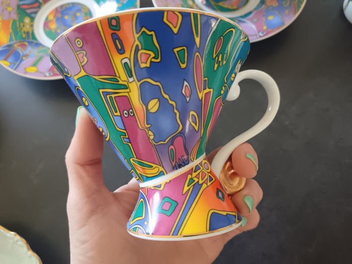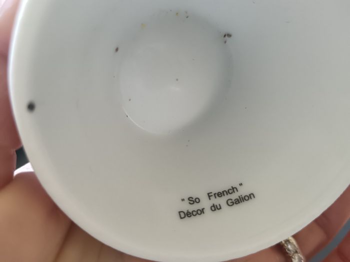 2 tasses à thé ou café avec soucoupes assorties. Thématique « So French » de la marque Décor du Galion sur inspiration Picasso. Excellent état. Jamais utilisées hormis en décoration. - 2 Tasses : contenance 20cl - hauteur : 9.2cm - diamètre haut : 10.4 cm - 2 Soucoupes : diamètre : 15.7 cm
