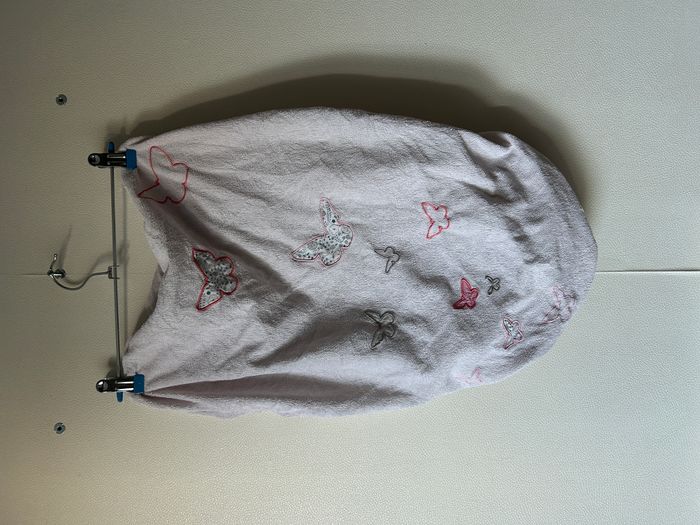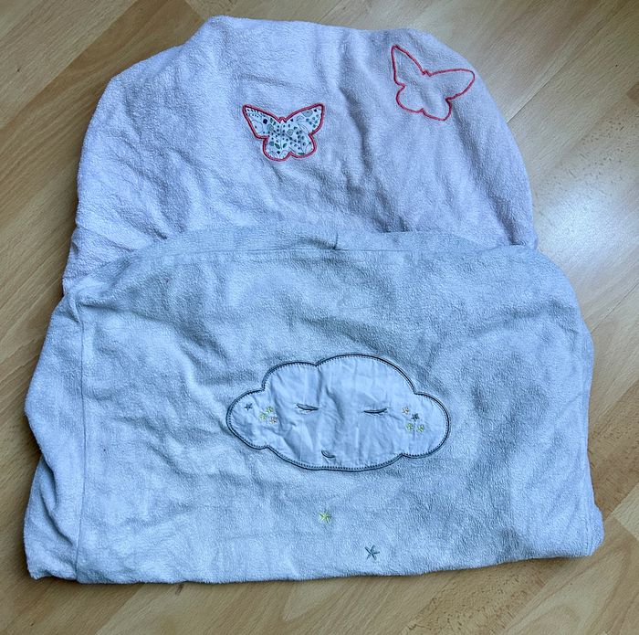 lot de 2, matière éponge - 1 rose pâle avec papillons - 1 grise avec nuage et étoiles peu utilisé aucune tâche