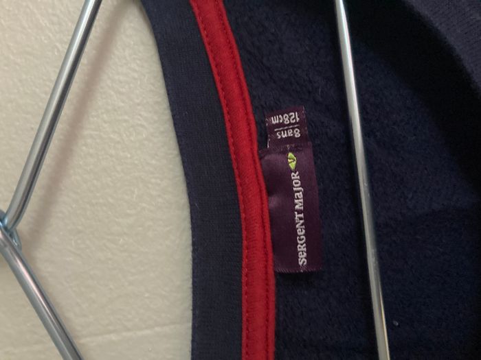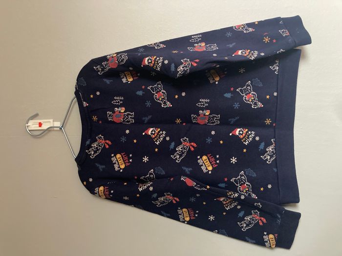 Sweat/pull de la marque Sergent Major, taille 8 ans (128 cm). Coloris bleu marine avec un motif intégral "Polar Bear Party ».+ « ENJOY" brodée en rouge sur la poitrine. Excellent état. Il a été très peu porté et soigneusement entretenu. Les couleurs sont comme neuves. #Worryfree_8ans #sergentmajor #8ans #ours #noel #pullhiver #modeenfant