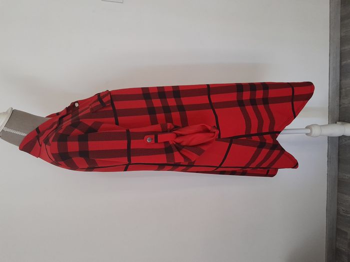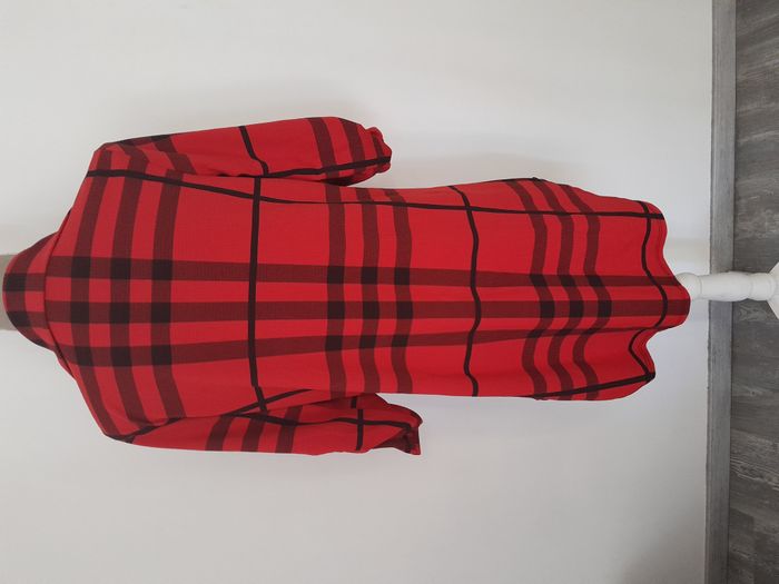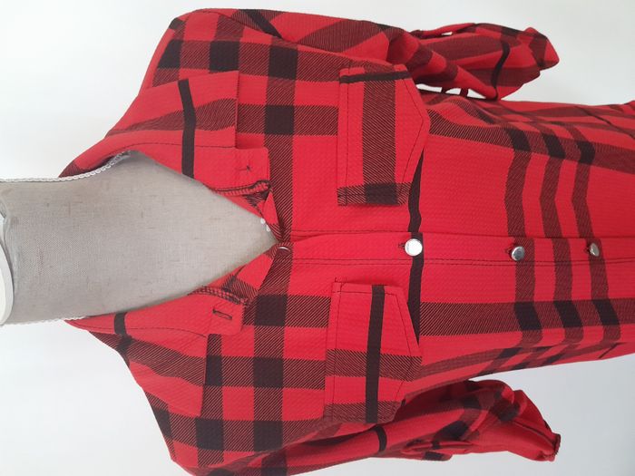 Robe chemise, à carreaux, 2 fausse poche devant, échancré sur les côté, manche 3/4 ou longue, attache bouton devant Longueur : 90cm Aiss / Aiss : 53cm Matière : 97 % Polyester, 3 % Elasthanne Marque : Made in Italt