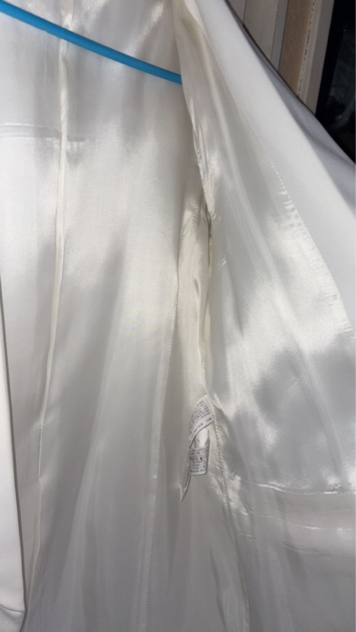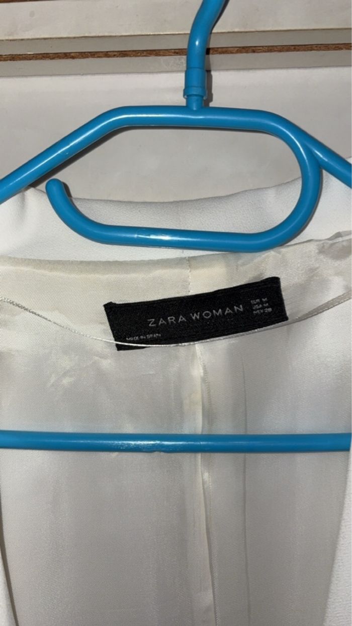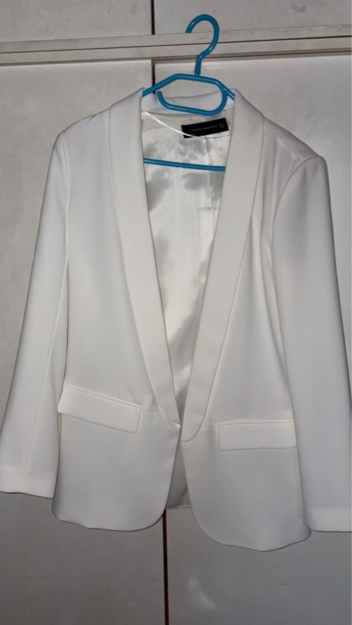 Veste blazer avec col à revers. Fausses poches avec rabat. Taille M, petite auréole au niveau de l’étiquette de la veste, très bon état.