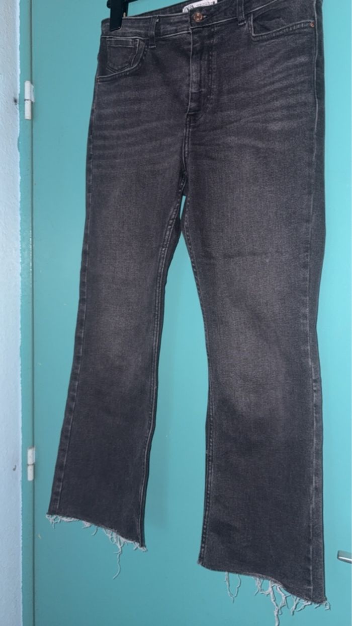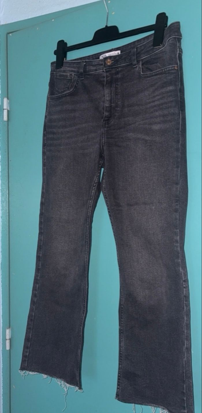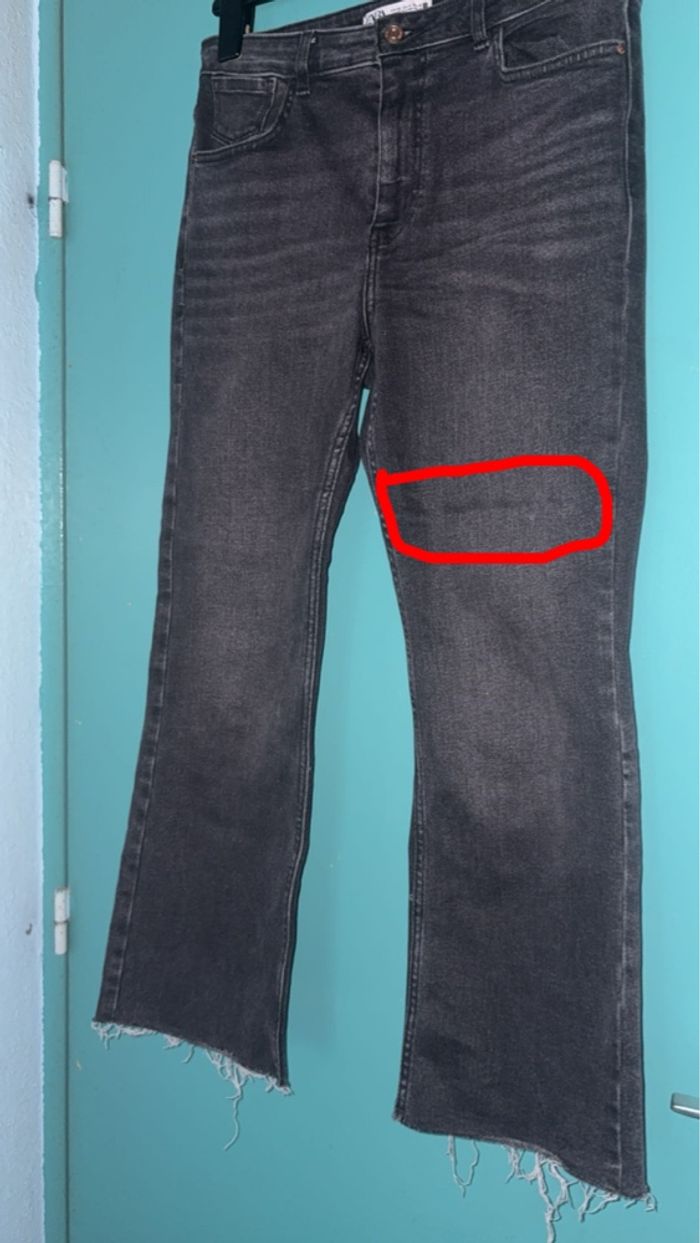 JEAN Z1975 LÉGÈREMENT ÉVASÉ TAILLE HAUTE TAILLE HAUTE - LÉGÈREMENT ÉVASÉ Jean taille haute à cinq poches. Effet délavé. Bas évasé sans couture. Fermeture avant par zip et bouton. Petite trace sur la jambe gauche.