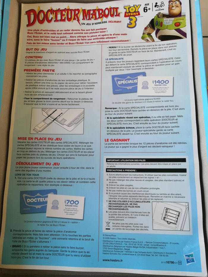 jeu docteur maboul toy story 3 disney hasbro avec règle du jeu à partir de 6 ans fonctionne à piles non fournies 2009 à noter légère oxydation du boitier qui n'empêche pas le fonctionnement d'autres articles de l'univers toy story à voir sur mon dressing