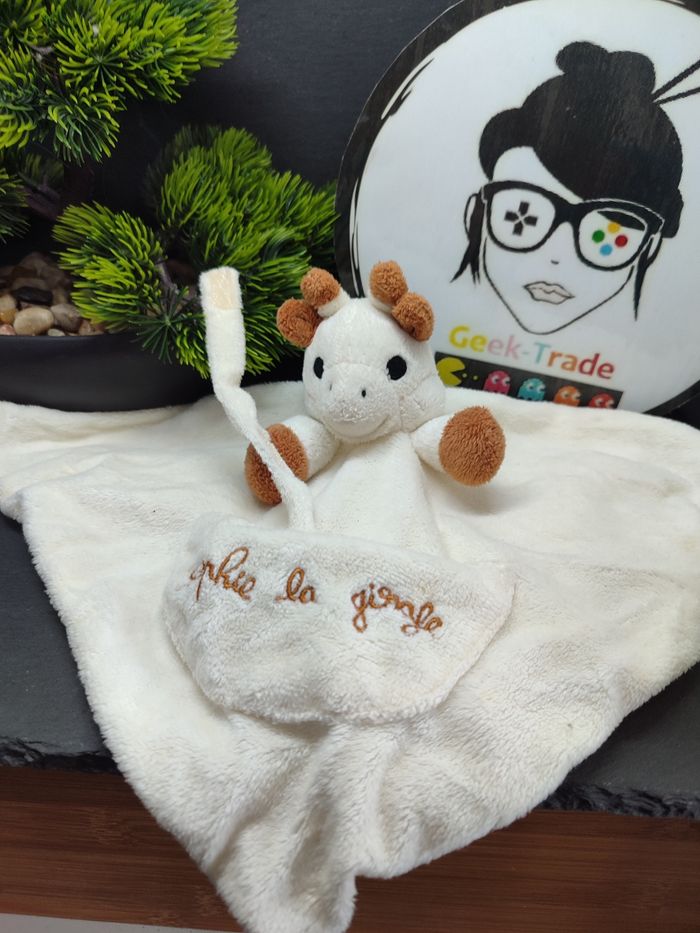 Doudou Knuffel Sophie La Girafe Vulli Beige Plat Mouchoir Marron Poche Noeud - photo numéro 1