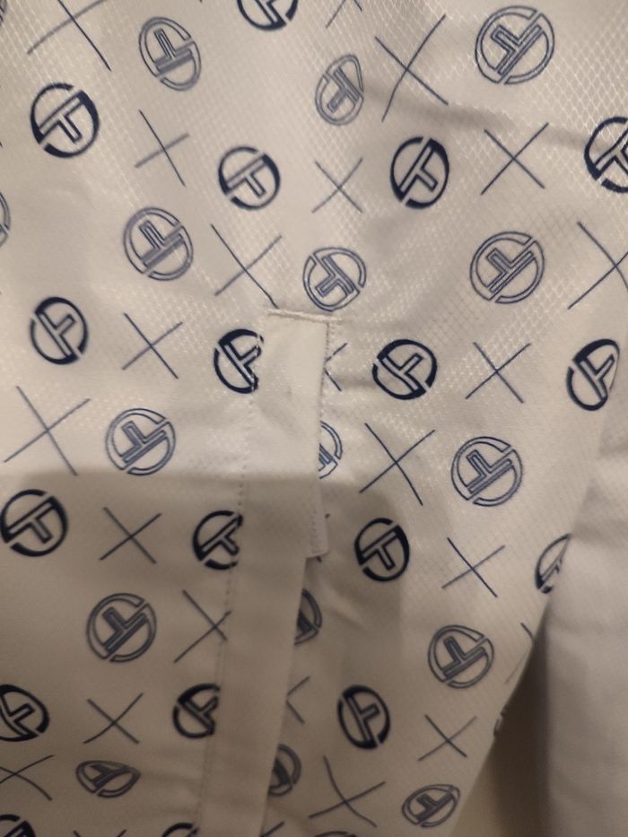 Survêtement Sergio Tacchini taille L. Très peu porté, en très bon état. Toutes les poches ont des fermetures éclair qui fonctionnent. Il y a seulement une toute petite tâche sur une des poches de la veste (voir dernière photo). Envoi rapide, soigné et protégé.