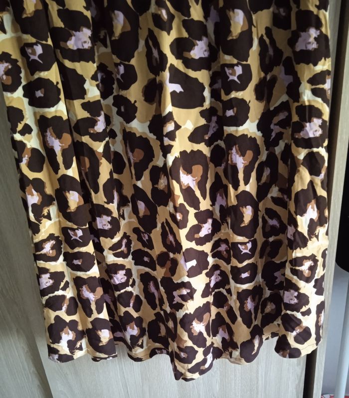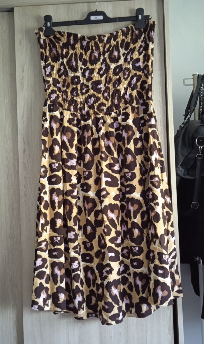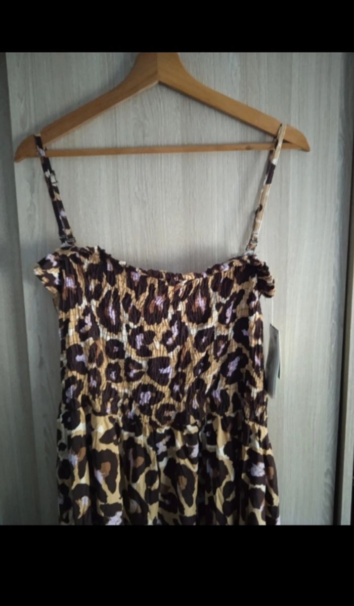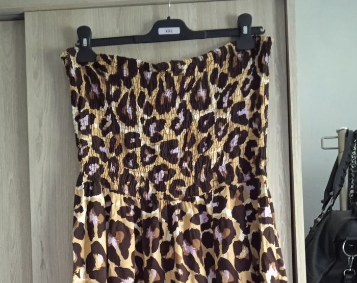 Bonjour je vends une jolie robe aux motifs léopard les bretelles sont réglables une partie élastique délimite la taille elle se porte bustier ou avec les bretelles parfait avec une paire de sandales couleur noir.