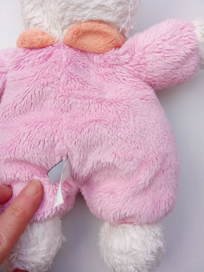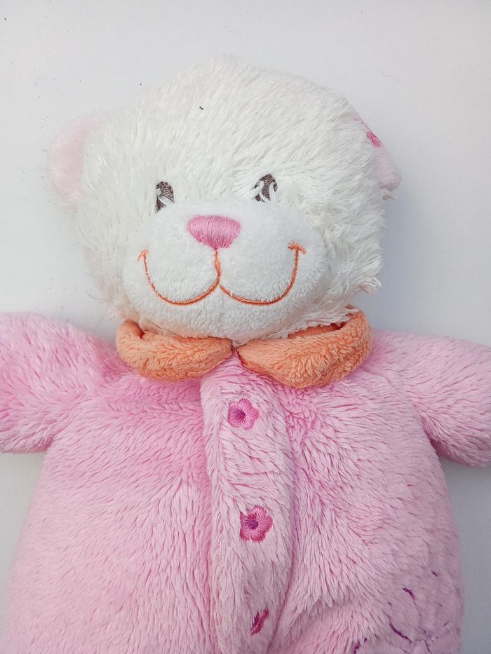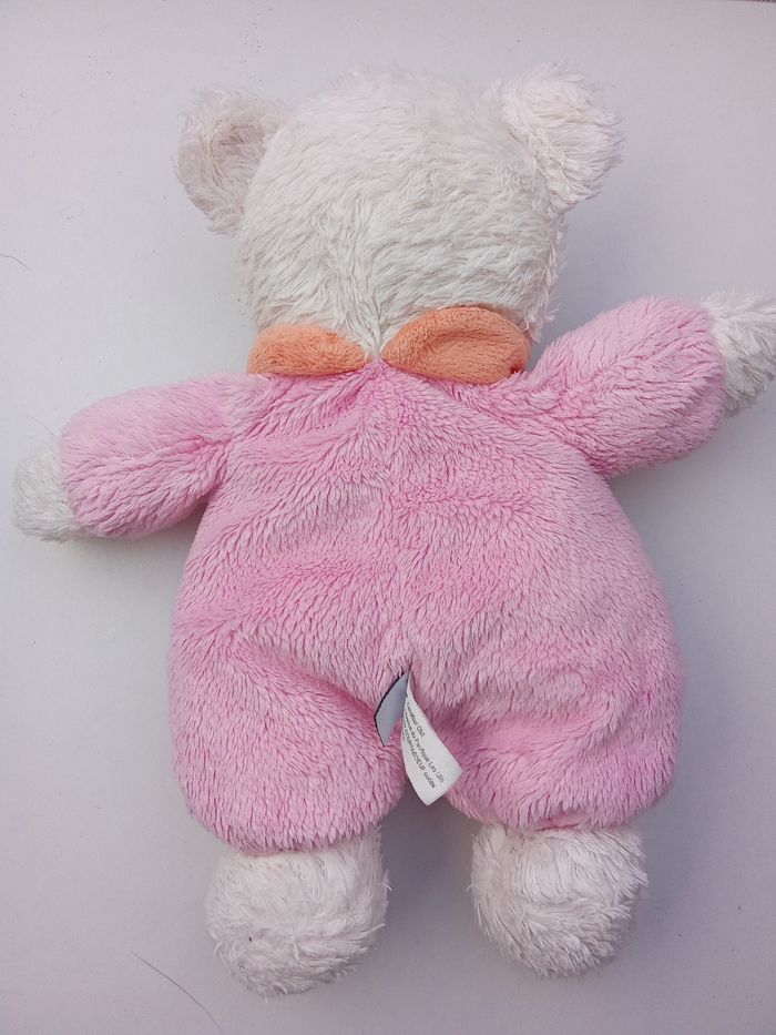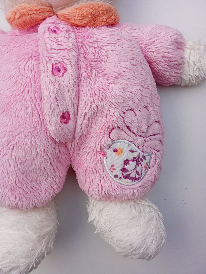 Doudou ours bébé fille rose, blanc, broderie oiseau marque tex baby - photo numéro 6