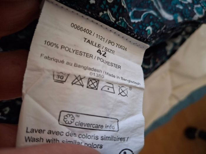 robe polyester 102cm taille 42 juste etiquette nom impossible à enlever(derniere photo)