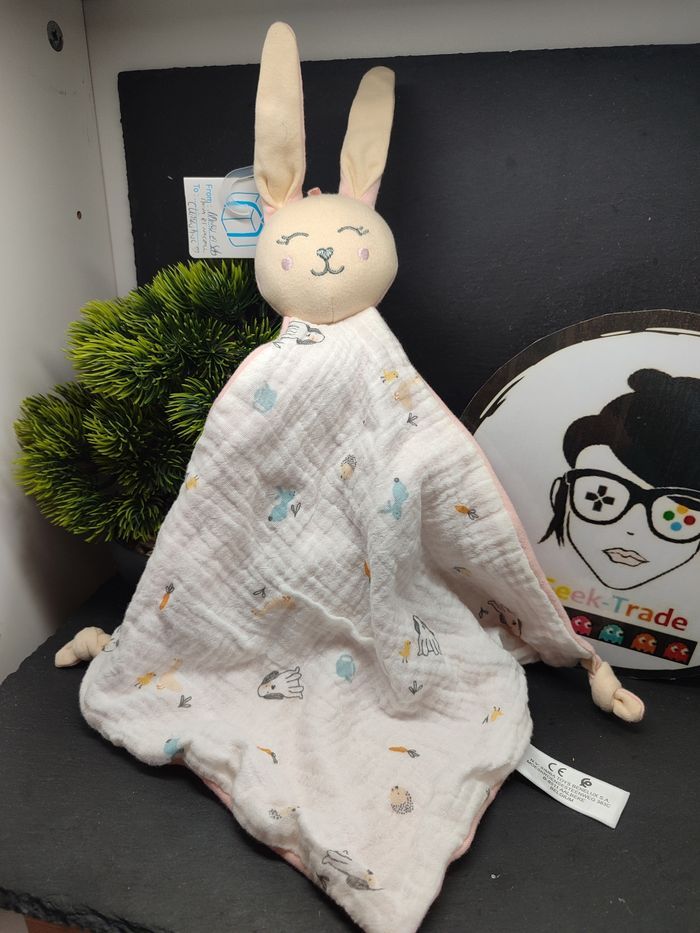 Doudou plat Lapin lange blanc rose chien hérisson carotte simba toys Neuf - photo numéro 1
