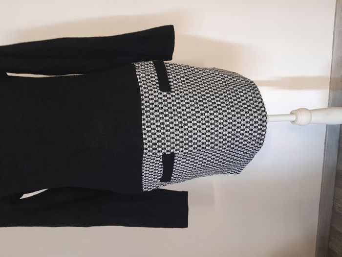 Robe pull, à carreaux sur le bas, 2 fausse poche Longueur : 80cm Aiss / Aiss : 46cm Matière : 70 % Acrylique, 20 % Viscose, 10 % Elasthanne Marque : Made in Italy