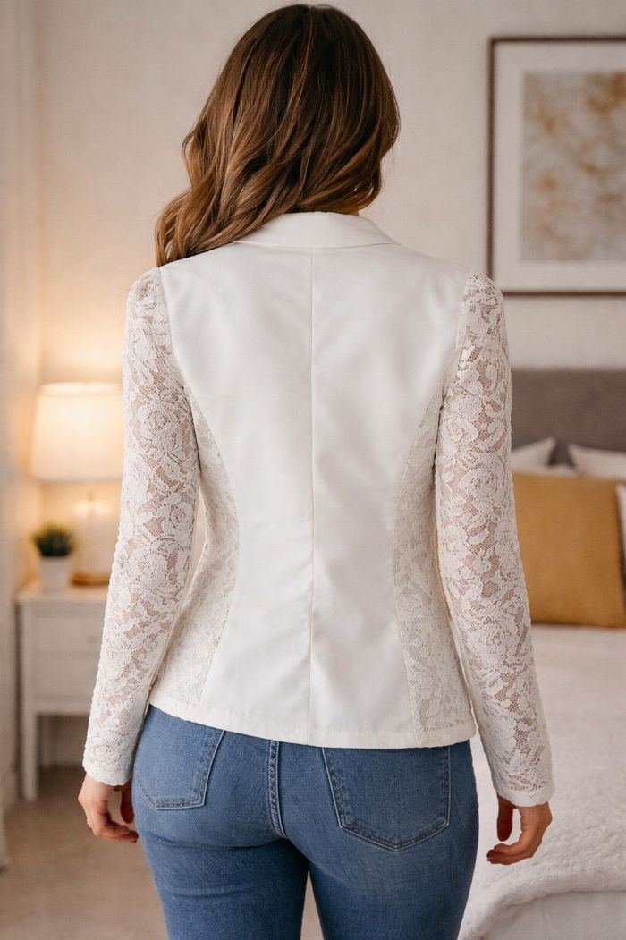 Veste blazer brodé Tissus léger Taille S Couleur blanc et crème Marque Zanzea collection Comme neuf