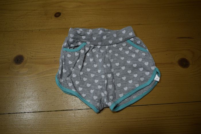 lot shorts bébé rêve 3 mois. 1 bleu uni bordures grise , 1 gris coeurs blanc bordures bleu. trés bon état.