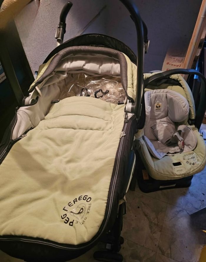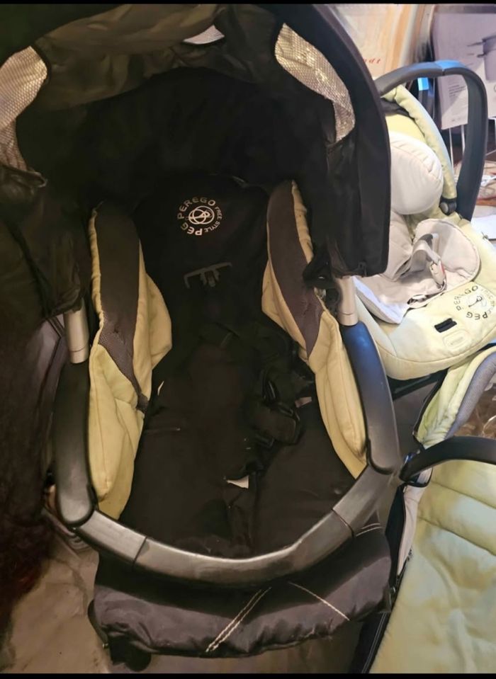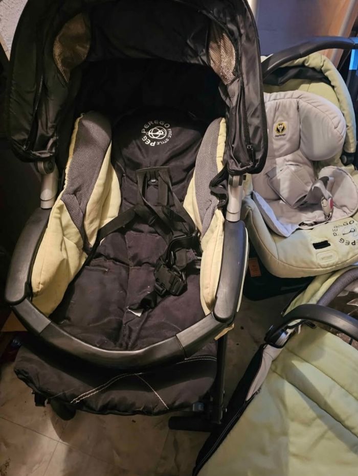 Poussette trio peg perego avec isofix état impeccable avec habillage pluie, se ferme comme Poussette canne