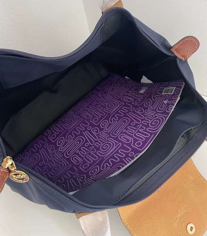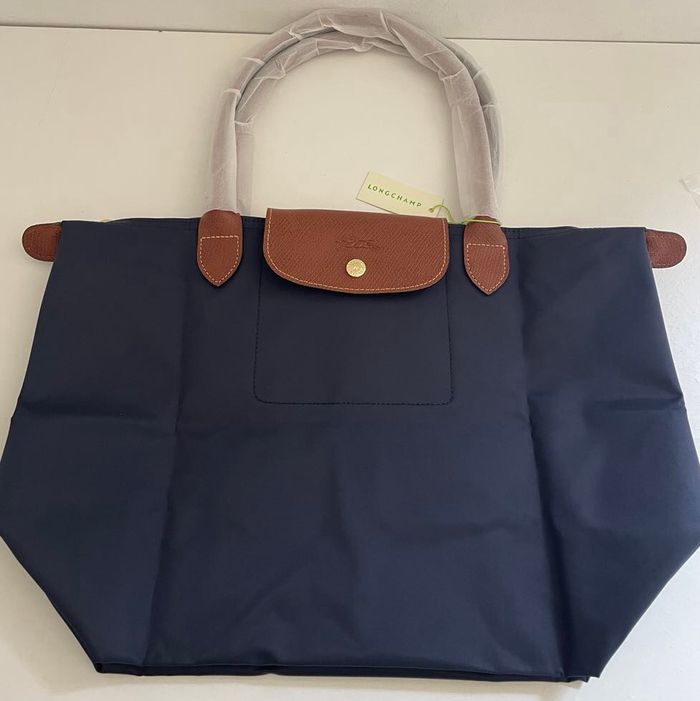 Sac fourre-tout Longchamp de couleur marine neuf encore etiquetté juste sorti pour les photos ❤️ Neuf jamais servie authentique 🌹 C’est le format taille L dimension en photo convient parfaitement pour les cours Envoie rapide