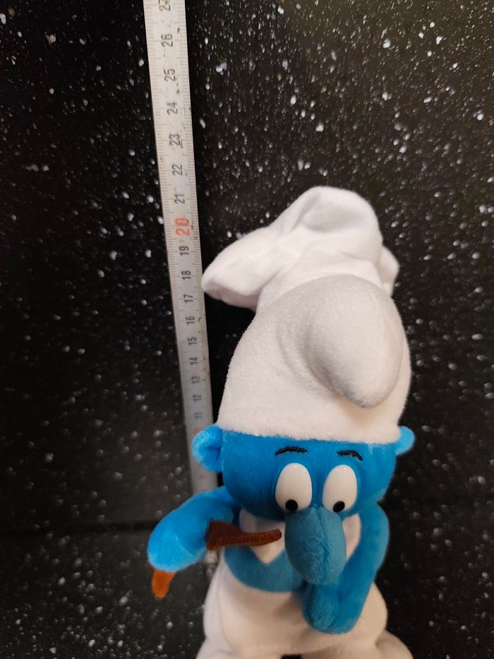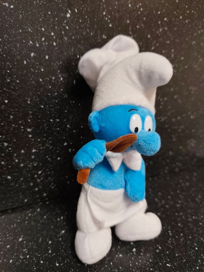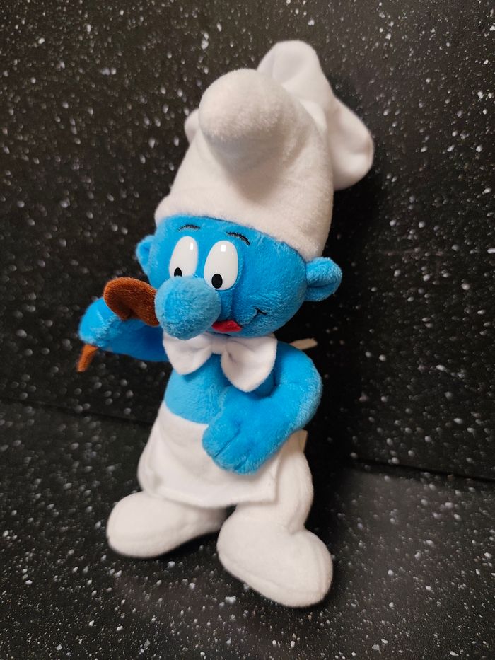 Jouet vintage ancien Peluche / doudou Schtroumpf cuisinier Peyo 2001 Environ 20 cm de haut 📌 Envoi rapide et soigné 📌 Maison non fumeur et sans animaux Il s'agit d'objets d'occasion ayant donc déjà servi, ils peuvent parfois présenter des traces d'usage et d'usure , merci de bien regarder les photos .