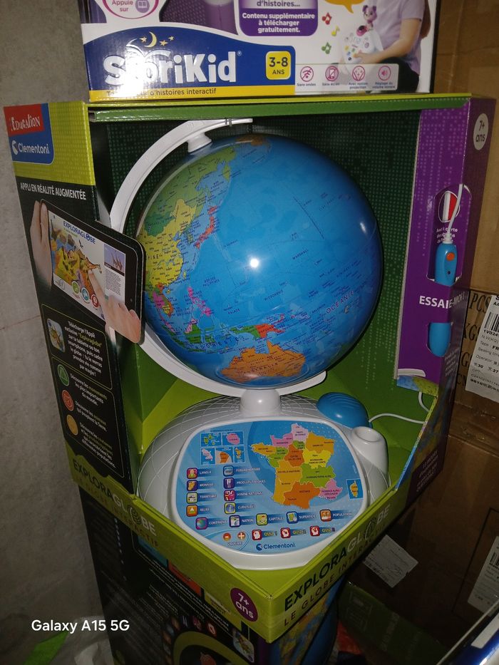 Un globe interactif et son stylo à lecture optique pour découvrir le monde de façon interactive! Thèmes abordés: Continents, Pays, Capitales, Superficies, Populations, Monnaies, Langages, Territoires, Altitudes, Fuseaux horaires, Curiosités, Produits typiques, Hymnes. Avec plus de 500 questions divisées en 3 niveaux de difficulté pour tester ses connaissances. Avec l'appli à télécharger gratuitement, les enfants pourront vivre une incroyable expérience de réalité augmentée: cadrez le globe avec un smartphone ou une tablette et des animaux, des monuments ou d'autres éléments apparaîtront sur le globe!