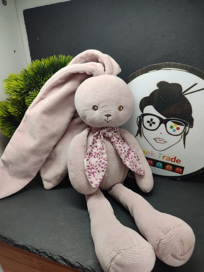 PE0283 Doudou lapin rose pantin Lapinoo kaloo noeud  peluche feuille fleur - photo numéro 1