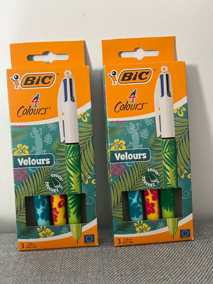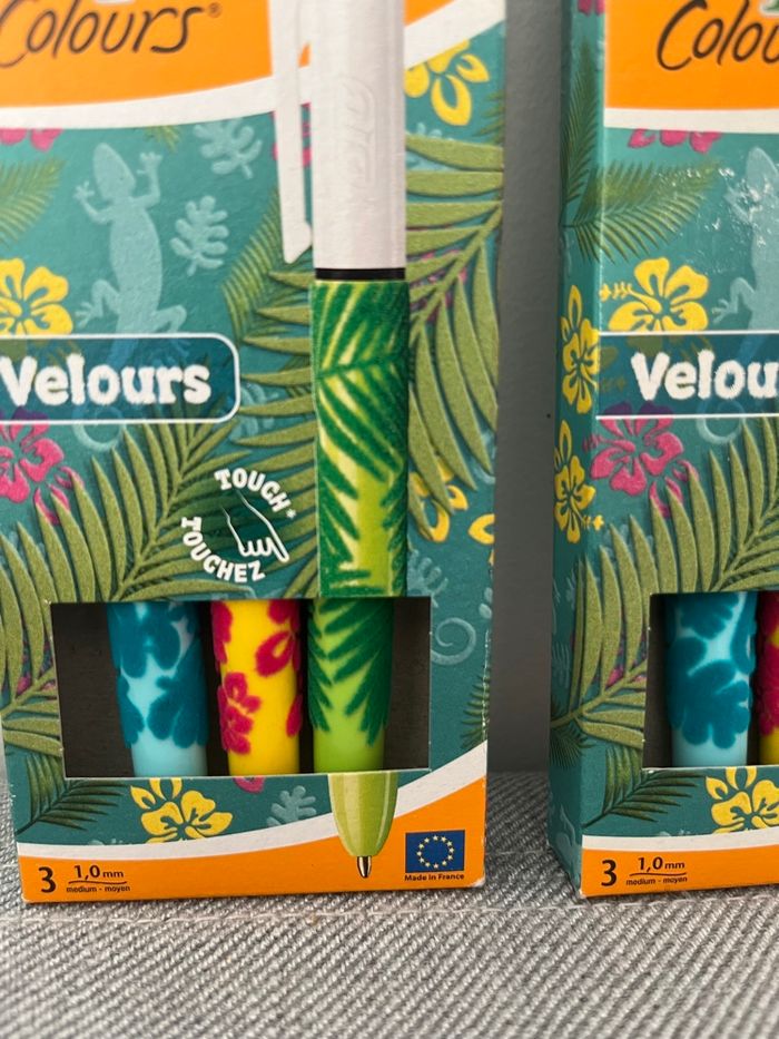 Lot de 2 paquets de stylo 4 couleurs Motifs en velours Collector 3 stylos dans chaque boîte Au total 6 stylos Neufs Envoie rapide