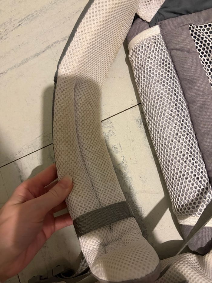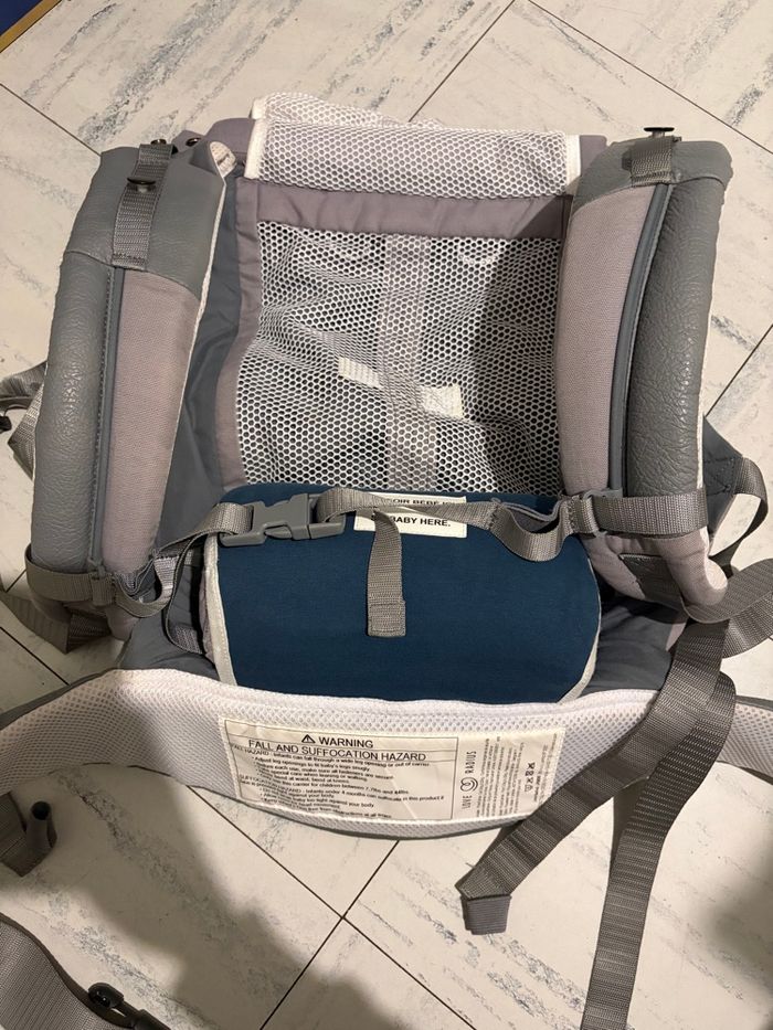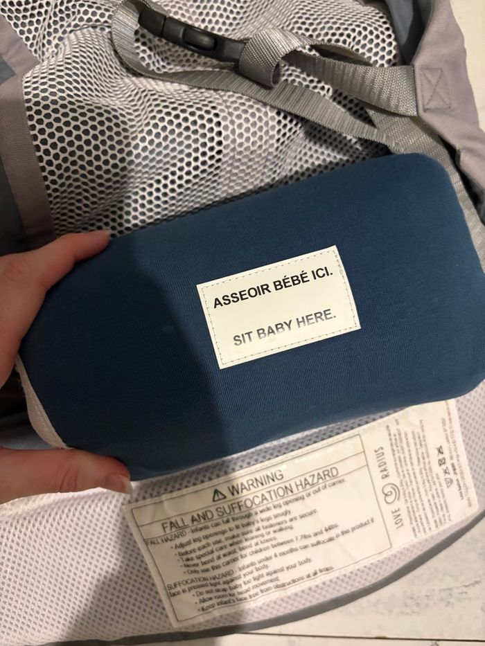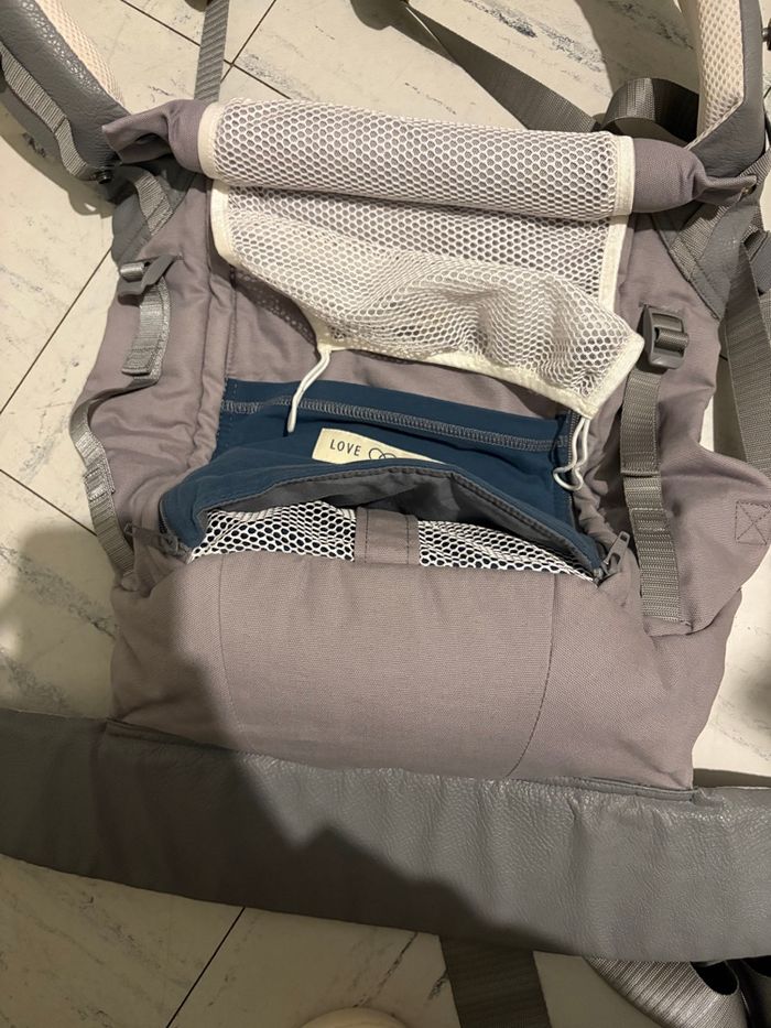 porte bébé physiocarrier love radius , très peu servie mais a des traces sur les bretelles (photo 3) avec le boudin et le cale bébé physiologique