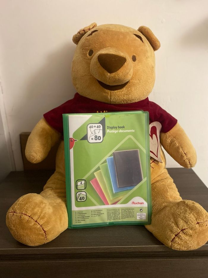 Vends grande peluche Winnie l’ourson, taille environ 60 cm de haut, tâche de feutre au niveau du cou voir photo