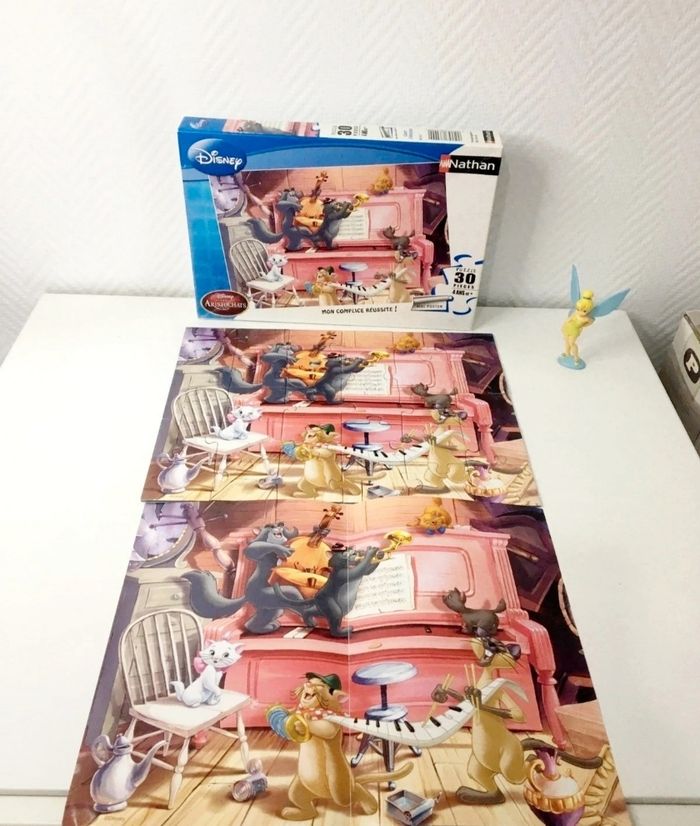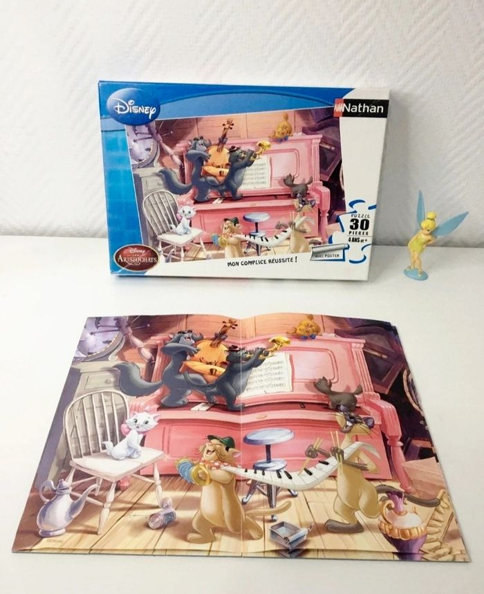 Puzzle Disney Les Aristochats de 30 pièces. - Type de produit : Puzzle - Licence : Disney - Âge recommandé : 4 ans et + En très bon état Complet Boite légèrement abîmée Un beau puzzle Disney pour les enfants !