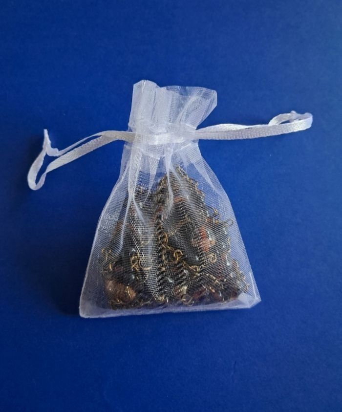 Collier fantaisie long NEUF avec chaîne et breloques. Petit sac offert. Voir mesures et détails sur les photos. Autres bijoux dans mon dressing. Idée cadeau de Saint Valentin.