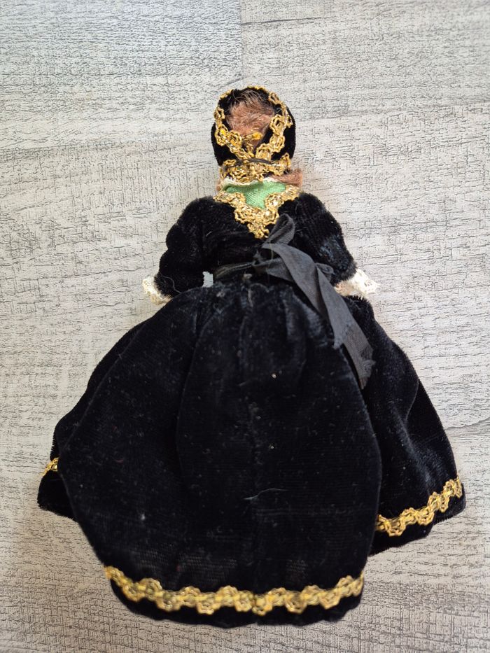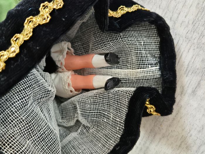 Petite poupée de collection floklorique. Très bon état. Coloris = noir, vert, doré. Hauteur = 17cm environ. N'hésitez pas à me contacter si vous avez des questions. Je vous répondrai dès que possible.